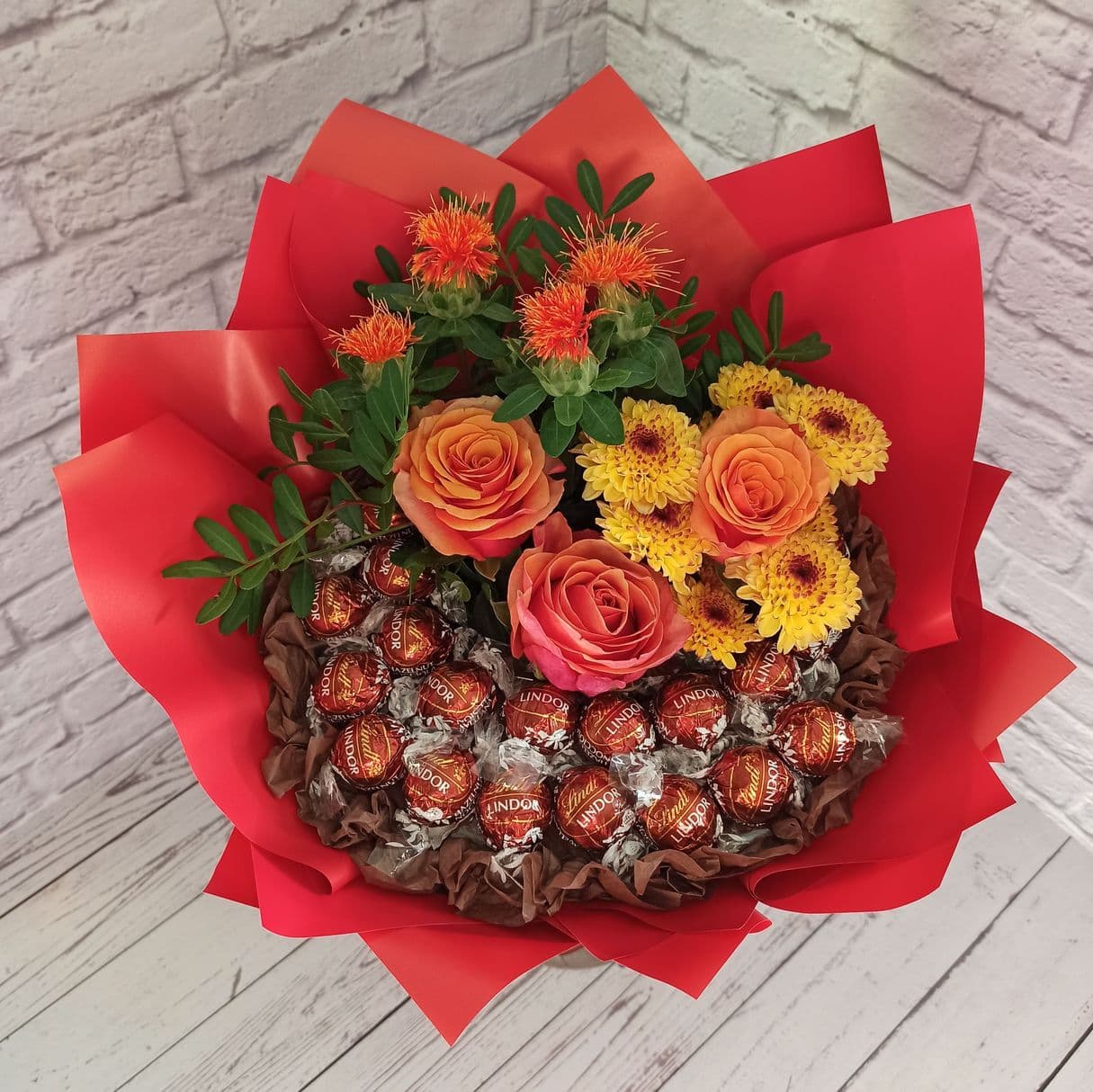 конфеты Линдор около 25 шт., цветы Роза, Хризантема, Кастамарус